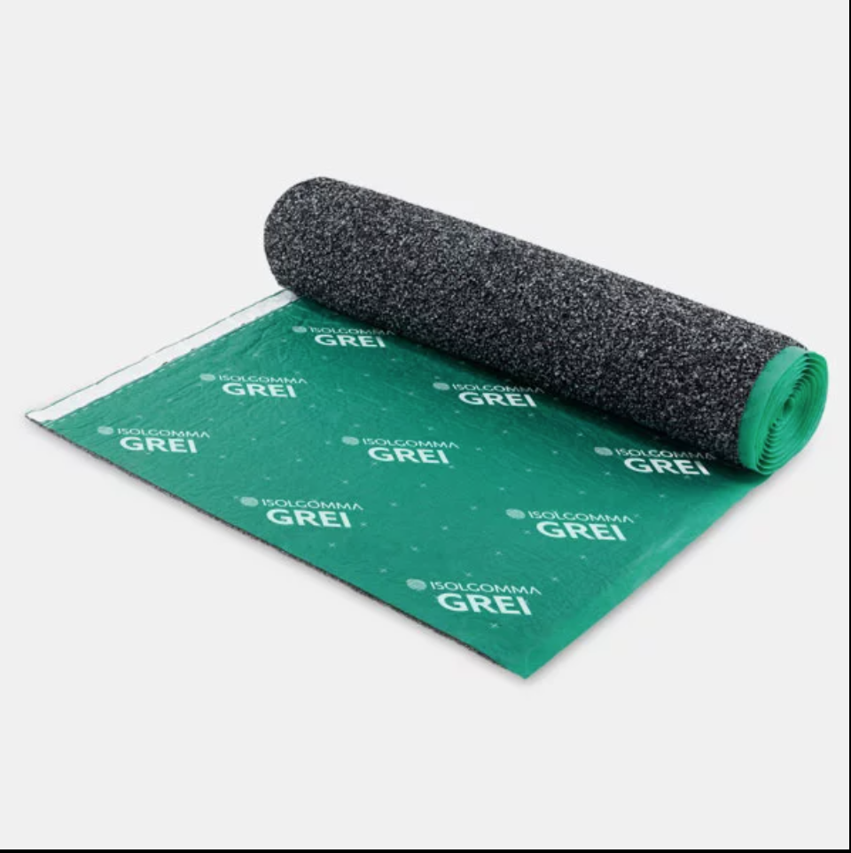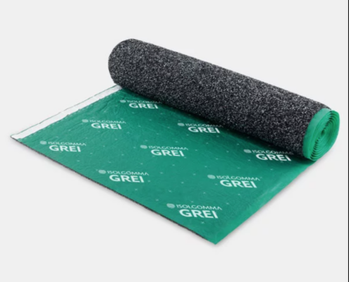 Isolgomma UPROLL ir ražots no SBR gumijas granulām un šķiedrām kuras sajauktas ar lateksa līmi un sapresētas karstā procesā uz sintētiska auduma. Materiālu izmanto “ peldošo grīdu” izveidei – triecienskaņas izolācijai grīdās. Materiālu ieklāj pa visu laukumu virsū izveidojot cietu kārtu no betona vai saplākšņiem.
